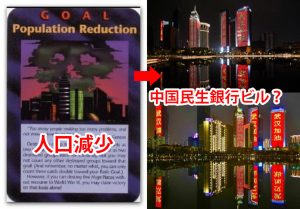 まさにこのカードの絵柄は武漢にある中国民生銀行ビル周辺に似ていると言われている。