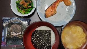 L’Arc30周年の海苔 3月11日(金) 自粛日記5thシーズン44日目。 今日は自分の健康にも気遣った軽い料理を作った。 普通に卵の味噌汁にほうれん草のお浸し、鮭焼きに L’Arc30周年のグッズ海苔。中身はメンバー事に味が違うのですが 今回は一番塩分控えめのYukihiroさんのごま味海苔を食べてみた。 めちゃくちゃ美味い海苔でした。