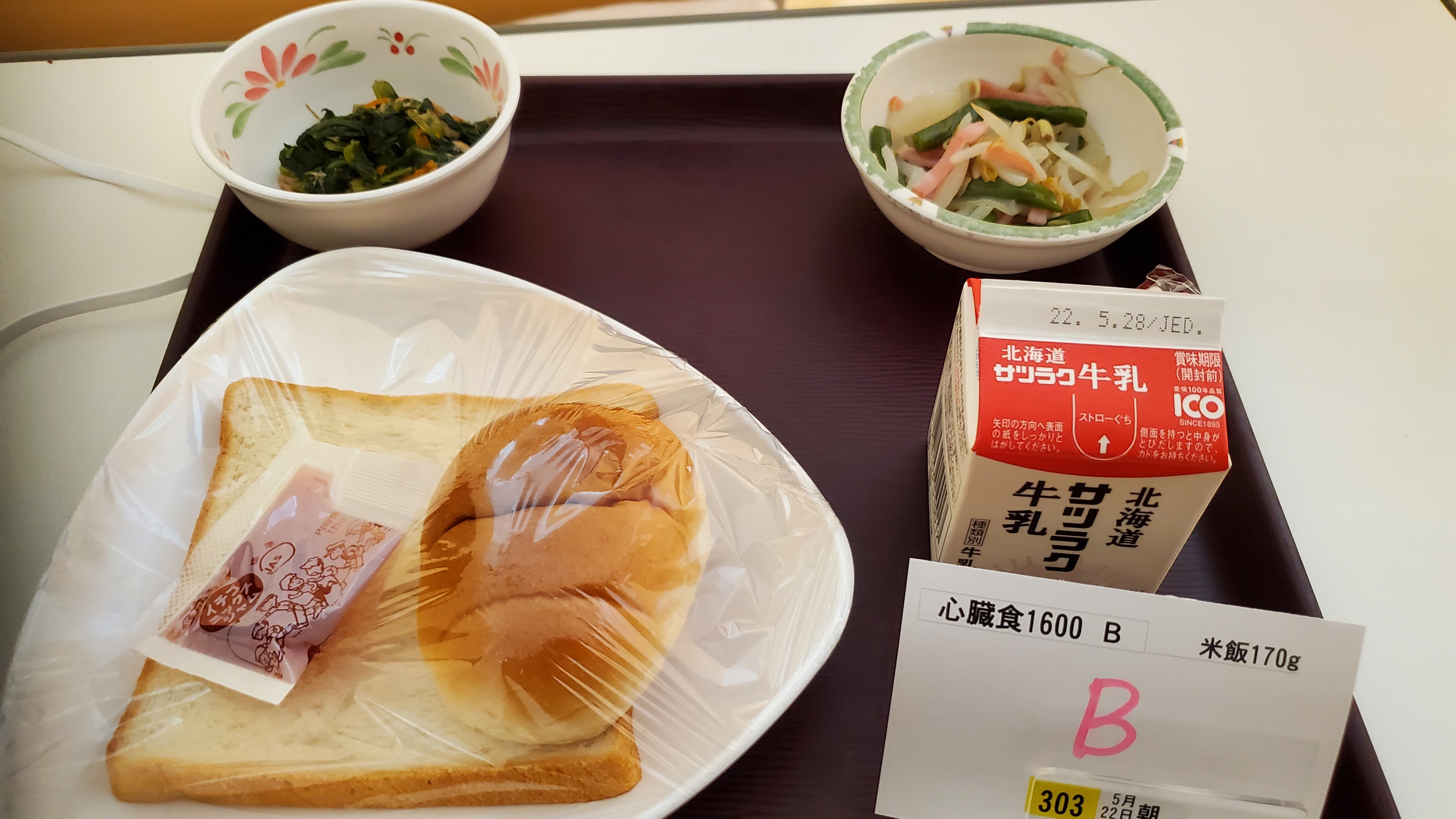入院中は組み合わせが悪くない限りパンは大丈夫との事で